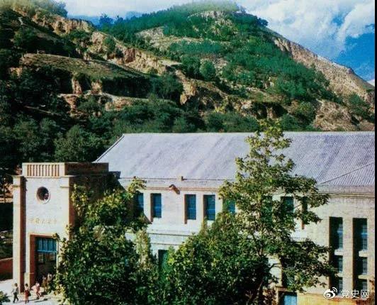 圖為中國共產(chǎn)黨第七次全國代表大會會址——延安楊家?guī)X中央大禮堂。